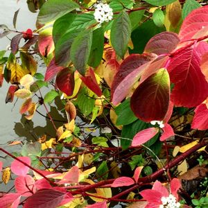 謎の実シリーズ 水辺にある錦木に似た木に白い実! これは色は変わることなさそうです。 葉っぱの色がきれいでした