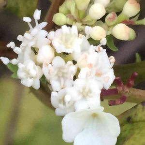 赤い実がなっている木に 一つだけ咲いていた花 実は二つ前の山茱萸に似た実でした。