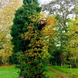 元々の木は右側の落葉樹で、大部分を覆う緑の植物が、一枚前のヤツデみたいな実をつける植物です。怪獣のように見えます🤣