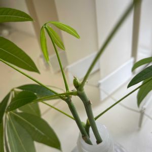 散髪したパキラに小パキラが出てきました。 かわいい🌱👀 花を咲かせるまで我慢できなかったけど、また大きくなるかな。 オフィスで芽吹いているグリーンがあるのは、元気があって雰囲気いいね☘️