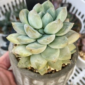 狩っ多肉④(コーナン) ライラックミスト🌱 ムチッとした葉っぱで もこもこなフォルムの子。 ダイソーのモルタル鉢に植え替えました✨ 可愛い赤ちゃんも見えてきました🧡 少しずつお日様に慣らします☺︎☺︎ 今日もおつかれさまです☕️