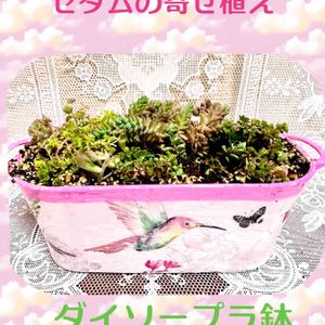 ちまちま屋さんで購入した寄せ植えキットのセダムとハロウィンの小さなオバケプラに入れていたセダムがモリモリに溢れてきたので広いダイソープラ鉢をデコパージュした鉢に植え替えしました(*^^*)v 未だに名札が無いとセダムを見ただけでは種類が分かりません😅💦