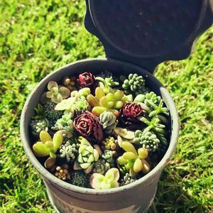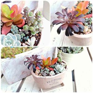 いつも多肉狩りに行っている園芸店さんで 今度ちまちま寄せ教室をやることになっているのでその練習をしたものです😊 セダム摘んで ちまちま詰めるの楽しいからハマっちゃいそう💕 可愛いリメ缶が欲しくなっちゃうな➰