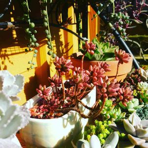 本当は玄関に飾りたいけど、ウッドデッキの上で頑張ってもらっています🌿 メルカリ多肉ちゃん達❤ 寒暖の差が激しいし、陽当りが良いせいか、色づきもいい感じ。 玄関置きたいなー😄 (でも陽当り悪い。。。)