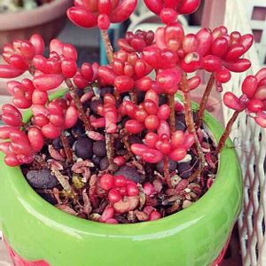 今回も、冬も外で過ごした虹の玉。まだ赤いです。下葉が落ち、所々黒くなってしまいましたが、よく頑張りました(*^^*)ダイソーの苺鉢がよく似合う(о´∀`о)
