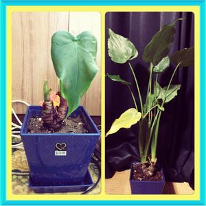 去年の夏頃にダイソーで買ったクワズイモ(*´ω`*) 左が去年の夏頃!! 右が現在!! 結構伸びたな(✿´꒳`)ノ°+.* ダイソー産だと思えない'٩꒰。•◡•。꒱۶'