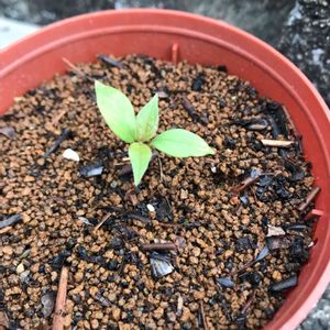 100均の腐葉土から発芽した子。 植え替えて毎日水あげてたら大きくなってきました! でも何の植物かわからない😅 もう少し大きくなって葉っぱが増えないと名前わからないかな😂