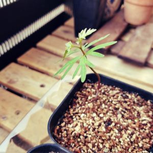 たぶんボスウェリア・ネグレクタだと思う。うん。確かにまいた気がする。 でもブルセラ・ファガロイデスにも似ていて、これもまいた気がする。 ネットで調べるとどちらにも似てて……もう少し成長すればわかるかも。 半分忘れかけたやつは発芽率が高い気がするなぁ。次回から面倒くさがらずにラベルを作らないと。