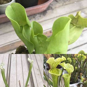 サラセニア 三原です。 艶姿とレウコフィラの交配種で網目の入り方とか形とか夏場に綺麗な筒を出しました。 食欲も旺盛でかなり虫をとらえており羽音が結構聞こえてます。強健で成長点も2から5に増えてましたので、次の冬に植え替えからの株分けで集会で出す予定です。