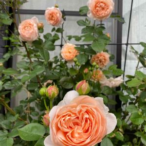 イングリッシュローズのアンブリッジ ローズ🥰 アプリコット色のかわいいバラです☺️ 黒星病?か褐斑病?か、何か葉っぱに斑模様が…😱 今まで庭のバラは無農薬で育てていましたが、今年は最低限の消毒はしようかなと思ってスプレーを買ってきました😅 消毒しても、多分斑点は消えないですよね…広がりを食い止められるといいのですが😂 効果がありますように…🙏