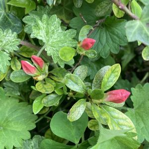 久留米ツツジ~雲の上~✨ 今年はまだ蕾💕 お義母さんの庭のツツジも蕾❣️ 2年前の投稿を見てビックリ‼️ 今年はどのお花の開花も、今までより遅いです🫢 というより… 今までが早くなり過ぎていたのかしらん🤫 2️⃣グレコマとアイビーとオキザリスの 葉っぱの中から🤭✨ 予報通り、雨が降り出しました☔️ 🏷今日のお花 🏷平和を願う🕊 📸9:40〜9:41