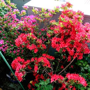 ノトキリシマツツジ八重と紅霧島が満開です。 華やか!