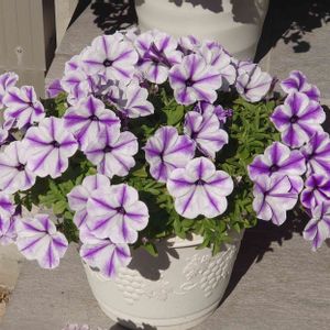 昨日受け取りました(^^) セネッティ ブルーバイカラー しかも2つ🙄 ネットで○○円以上〜の注文だったので😅 私の都合で夕方に受け取ったので 箱から出したら葉がややしなってたけど とても状態が良さそうな苗で 安心しました。 あさって植え付け予定です(^^)