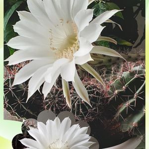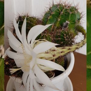 🤍サボテン💚 (短毛丸) 一日限りの白い花 今年は2回目!! 甘い香りで咲いた事を 知らせてくれます +* ゚ 🌵🤍💛🤍🌿゚ *+:。:+* 🏷️乙女色クラブ 🏷️白い水曜日♡ 初参加です よろしくお願い致します