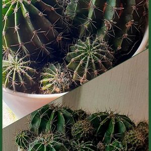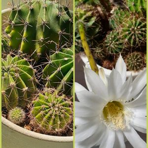 今日のお花 🌵サボテン (短毛丸) ⬅2鉢に分けた現在の短毛丸 ➡昨年4月投稿 白い大きな花咲かせていました +*:ꔫ:* *:ꔫ:*+ 株分けしてからまだ咲きそうに ありません🥲🤐 大きくはなっているので そのうち又、咲いてくれるでしょう🤧😉 𓂃𓂂𖡼.𖤣𖥧𓈒◌܀𖥧𖧧 ˒˒.🌵