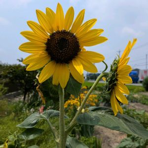 こんにちは☀ 関東地方も梅雨明け これから10日間は 晴天🌤️が続く予定・・・ ヒマワリ ひねくれた彼女は 東側(手前)と北側を 向いていました🤓 翌々日、ミツバチ🐝さん