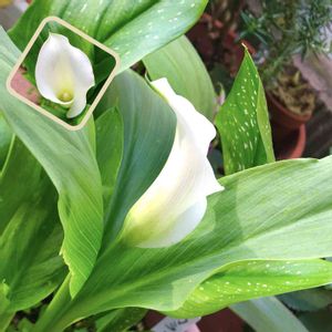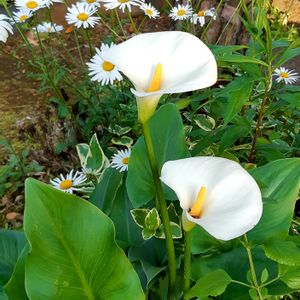 🏷️白い水曜日 お天気がスッキリしませんね…… 爽やかな白いカラーのお花が咲きました ムシムシした1日になりそうです体調崩さないようにお過ごしくださいね