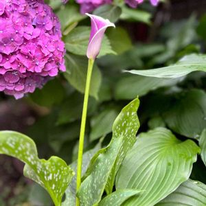 にょ〜ん カラーが開花してました✨ 紫陽花が広がりすぎて気が付かなかった