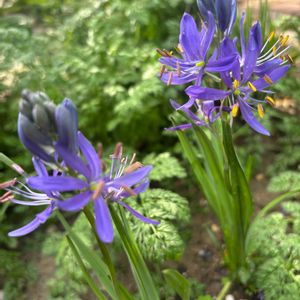 カマシア という花、開花しました✨ 去年の秋、ホームセンターで一袋だけ売れ残ってた球根を買って、小さな花壇に植えました。 細い葉で、度々強風のわが家の庭にはどうかと思いましたが、なんとか咲いてくれました👌💕
