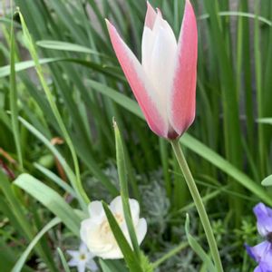冬越しをしたアメリカンブルーやガウラが咲き始めて、冬越しの楽しさを知ってしまいました。 手間がかかるし、心配だし、水やりの度に全部出して戻してと大変なのに来年もやろうかなと思い始めています。 植えたのを忘れかけていたチューリップペパーミントスティックが咲きました。