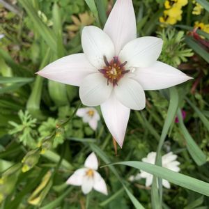 上から見ると別の花のようです 原種チューリップペパーミントスティックが開きました 開いてるのも閉じてるのもかわいい