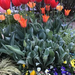赤や ピンクの チューリップ🌷が 咲いていましたが、最後に ユリ咲きの オレンジ🧡色の チューリップが 、 低い所 で 咲いて 合流しました ❣️ そろそろ チューリップ🌷も 後半戦 です❗️^_^