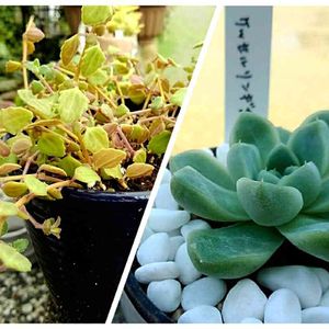 GSでお友達になった方からの誕生日プレゼントの中に入ってた子達。 どちらも持ってない子だし、右の子は、めっちゃプリップリ。ちゃんとこのまま、肉厚なまま育てられるかなぁ💦 左のプロストラーツスは、水挿しで根を出してねって書いてあったんだけど、3分の1は腰水で土植えにしてたらどっちも発根したので、一緒にしました。 大事に育てるね💕