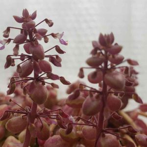 去年は紅葉してきてるところで早めに加温温室管理(15℃設定くらい)に切り替えたから緑んに戻っちゃったので…w 今年は紅葉を長く楽しもうと耐寒温度ギリギリくらいまで多肉部屋の窓の手摺りで管理してたけど、紅葉したけど予想してたより赤みが強くならなかった…w (もっと全体ピンクなのが見たかったけど、こんなもんなのか!?w) うん、それでもやっぱ、このピンクがかったムチムチの葉に葉脈ラインは可愛すぎてたまらんっ!! スキ━・:*(〃∇〃人)*:・━!!!!!w ■ プレクトランサス属 プロストラーツス