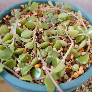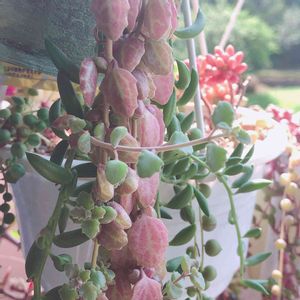 みらいチャンの🏷ネックレスの日 参加しまーす💕 今日は曇ってた☁から 一昨日撮影しといて良かった😊 夏も無事に越せたネックレス♾さん達 ぐんぐん伸びたねぇ👍 斑入りグリネさん、4月にお迎えした時は 10cmもなくはじめは成長遅かったけど たらーんとなって来てます🥰 プロストラーツスは、左が元の葉で 右が切り戻しの葉🌱 違いがあるよー(*›◡︎‹*) 写真の8つのネックレスの他に レディハートがいるんだけど 鉢を2回もひっくり返して葉が1本に🤣 療養してたんだけど最近、動きが出て来ました☺️ またいつか登場させたいな💓 みちのすけチャンのルビネさん、もりもり🍇ですよん😆👍💕