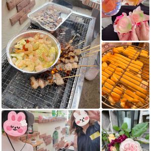 ななちち亭オープンガーデン2022最後は食べ物and同級生美人コンビ編(あはは🤣自分で言う〜許してちょんまげ古ッ冗談ですよ普通に突っ込んでくださいね💦) トミ様が私と写真を撮ってくださいました😊後から知ったのですが同じ歳でした⁉️ トミさんの方が肌艶が綺麗で私より5歳はお若く見えました✨ やっぱり私は中身が後期高齢者だからな〜敵わないわぁ〜 今年もななちちさんお得意のスモークチーズにアヒージョ、はまぐりのバター焼きどれもとっても美味しゅうございました💕 ご馳走様でした✨
