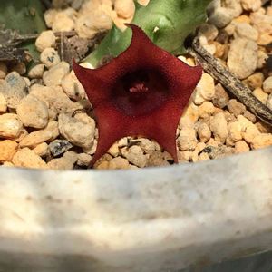 フェルニア黄蛾角が咲きました(*´︶`*) 黄とついてるのに花は赤色