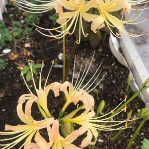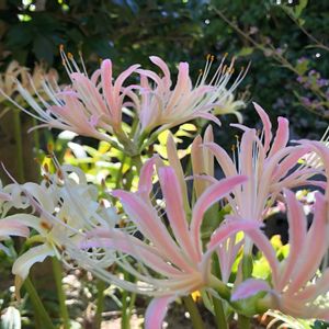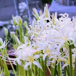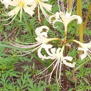 白い彼岸花…🙄? 左端にある色合い(白にうっすらピンク)で去年は咲いていたけど今年はサーモンピンクのようなリコリスがたくさん咲きました💗 そしてなぜか赤も咲きそうです。 なんでかなぁ•́ω•̀)?