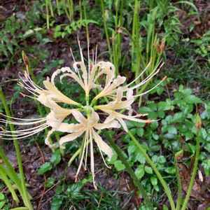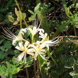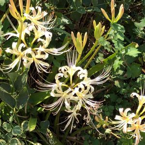 例年ならこの時期には、 あちらこちらで彼岸花を 見かけるのだが、今年は、 花が咲くのが、遅れている ようだ。 花友のお庭で白い彼岸花が 咲いていた。本格的な秋の 訪れを感じる。
