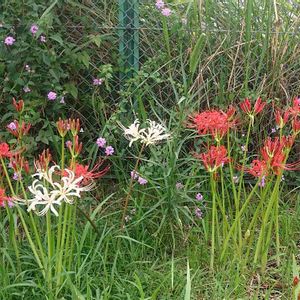 おはようございます😃🌞 昨日は暑かったけど自転車でお墓まいり(納骨堂参り?)に行ってきました 紅白の彼岸花が咲いていました まだつぼみの状態のもありました