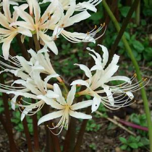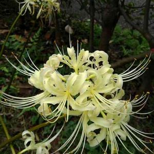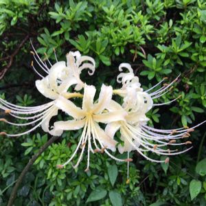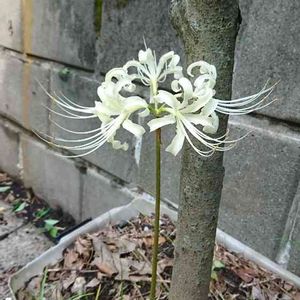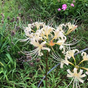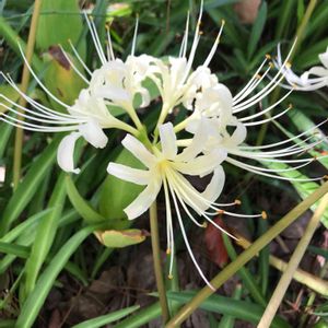 先日、白色の彼岸花の芽が 出てきたよーって持って きてくれた🤗 早速、庭の隙間に植えてみたら パッと綺麗に開花しました‼️ 真っ白じゃなくて 優しいオフホワイト😍 ただいま3つ、 来年は増えてるかなあ〜〜✌️