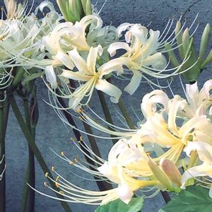 預けた多肉ちゃんたちを見に実家まで。 秋の花がいろいろ咲いていました。これは白いヒガンバナですが、母曰く、だんだん色が入ってきてるって。そんなことがあるのか?!