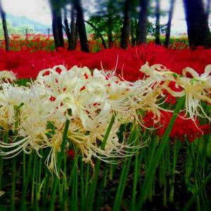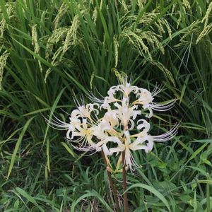 白のヒガンバナ(^_^) もうちょっと咲いてからアップしようかと思いましたが、どしゃぶりの雨にあたってしまったようなので〜