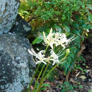 北鎌倉のお寺で。 白い彼岸花が咲いていました。