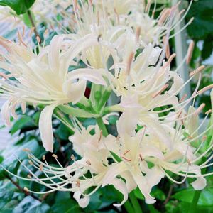 ヒガンバナ 白いヒガンバナが、やっと咲きました