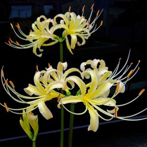 【彼岸花:曼珠沙華シリーズ⑦編】 ☆彼岸花:曼珠沙華:spider lily//cluster-amaryllis ♡この写真画像は、近所の小さな山の林の中で咲いていた白色と黄色のヒガンバナを撮影したものデス)^o^( 家から約5分の小さな山の入り口の山道の脇から林の中まで、ヒガンバナが群生していて、赤色・白色・黄色の3色を観ることが出来る、嬉しいスポットの一つデス)^o^( どうぞ9月19日・21日・24日の彼岸花シリーズ①・②・③・④・⑤・⑥をもご参照くださいマセ( ◠‿◠ ) 以下、①②③④⑤⑥に同内容デス)^o^( 【ヒガンバナ::彼岸花の豆知識】 日本では秋の花として親しまれるヒガンバナ:彼岸花デスが、別名、リコリスや曼珠沙華とも呼ばれ、日本特有の「彼岸」の時期に咲く花として知られています。 映画や歌のタイトルにも使われたことから、「赤い花」として印象に残っている方も多いのではないでしょうか? 彼岸花(曼珠沙華)とは? 英語名や別名の読み方、学名や原産国は? 彼岸花:ヒガンバナ 学名 : Lycoris Radiata 英名 : Spider lily/ cluster-amaryllis etc., 原産地: 日本、中国 開花期: 7~10月 花の色: 赤、白、ピンク、黄、クリームなど 別名:彼岸花の別名はたくさんあります。 曼珠沙華(まんじゅしゃげ/かんじゅしゃか)、死人花、地獄花、幽霊花、剃刀花、狐花、捨子花、毒花、痺れ花、天蓋花、狐の松明、葉見ず花見ず、雷花、レッドスパイダーリリー、ハリケーンリリー、マジックリリーなどなど ☆ 彼岸花の英語名: ・cluster‐amaryllis/ spider lily clusterには、房、束という意味があります。 【例】a cluster of grapes 「一房のぶどう」 また彼岸花は、その姿がクモの形から、赤い彼岸花は"red spider lily"白い彼岸花は"white spider lily"と言われることもあります。 彼岸花とはヒガンバナ科・ヒガンバナ属(リコリス属)に分類される球根植物です。 日本や中国に広く自生し、秋の彼岸の期間(秋分の日を入れた前後3日間)だけに花を咲かせることに由来して名付けられました。 9月になると赤や白、ピンクなど花を咲かせるのが特徴です。 彼岸花:曼珠沙華は「まず花が咲き、後から葉っぱが伸びる」という通常の草花とは逆の生態をもっています。 その葉と花を一緒に見ることがない性質から「葉見ず花見ず」と呼ばれ、昔の人は恐れをなして、死人花(しびとばな)や地獄花(じごくばな)などと呼ぶこともありました。 確かに彼岸花には葉っぱのイメージがないですね。 彼岸花の葉は、花が咲き終わった4〜5月頃に、地際から多数発生します。 濃い緑色で光沢のある細い葉が特徴です。 ☆彼岸花(曼珠沙華)の開花時期や見頃の季節は? 彼岸花の見頃の時期は、9月下旬あたりです。 自生している原種は彼岸である秋分の日前後に花を咲かせますが、品種改良によって最近では夏〜秋の間に見頃の時期を迎えるものもでてきました。 ♡ヒガンバナ:彼岸花:曼珠沙華の花言葉: 「あきらめ」「独立」 ☆色別の彼岸花(ヒガンバナ・曼珠沙華)の花言葉 ・白の彼岸花(ヒガンバナ・曼珠沙華)の花言葉は「また会う日を楽しみに」 ・赤の彼岸花(ヒガンバナ・曼珠沙華)の花言葉は「情熱」 ・黄の彼岸花(ヒガンバナ・曼珠沙華)の花言葉は「深い思いやりの心」 *雨後の彼岸花 乾燥状態が続いた後に大雨が振ると、一斉に花が咲くという現象があります。 これが「雨後の彼岸花」とも呼ばれる由縁です。 もし彼岸花を見に出かけるなら、雨が止んだ後をお勧めします。 とても彩りが美しく輝いて綺麗で、写真撮影がより楽しめますょ⁈ 📝彼岸花:曼珠沙華の投稿は、下記の【キーワード】選択で【彼岸花:曼珠沙華シリーズ 和堂】をタップすると、全てがご覧頂けます。 ♡どうぞ花と蝶をお楽しみ頂けましたなら幸いデス🙏 by Kazyan’s Green Shot Artistic: The Red Helen 2020/Sep 23/past am 09:30' 📱shooting 2020/Sep 24/past am 06:45' upload