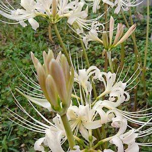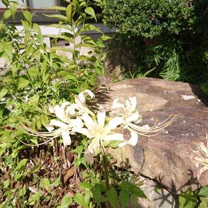 白花曼殊沙華 お彼岸ともなると朝夕涼しく、今朝は肌寒い位でした❗