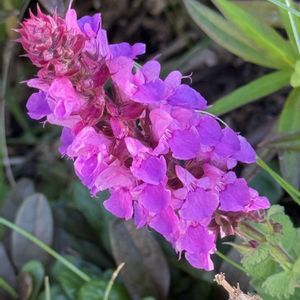 Salvia nemorosa/Salvia. Lamiaceae. Lamiales. Magnoliopsida. Tracheophyta Commonly called/Woodland Sage. Balkan Clary Nativd to/Central Europe. Western Asia Symbolism/Protection *In spiritual traditions and historical contexts, sage is used to ward off negative energy and offer protection. *Genus of about 900 species *Erect, many-branched perennial with ovate, lance-shaped to oblong, notched, winkled, with green leaves, to 4in(10cm)long. *From summer to Autumn, bears violet to pink flowers, to 1 1/2in(1.5cm)long *The plant was named and described by Carl Linoeus in 1762. Photographed 10/4 8:53am 2025 Posted 10/6(Monday) 11:58am 2025