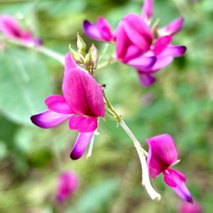 今日のお花🌿ハギ🌿萩 マメ科ハギ属の落葉低木 初めて出会った濃い赤紫色のハギ💕 名札には「ムラサキセンダイハギ」と書いてありました📛 投稿後にタグで調べたら、ムラサキセンダイハギじゃないですね😅💦 ムラサキセンダイハギは紫🟣一色。 一度見てみたいです。 これはミヤギノハギでしたm(_ _)m 2024.9.30撮影