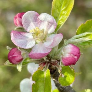 【ciitaの樹木一年シリーズ】6️⃣5️⃣ 今日のお花🌿リンゴ🌿林檎 バラ科リンゴ属の落葉高木 別名 セイヨウリンゴ このリンゴの木は、消毒などをせずにほぼ野生状態(ほったらかし)で育ったもの。 ですから果実🍎はみすぼらしいですが、花は期待通りとっても可愛いかったです💕 ①②花とつぼみ *短枝の先に散形状の花序出し、直径3〜4センチの花を数個つける *おしべ 約20個 *花柱 5個で基部は合着して腺毛密生 *子房 5室 *萼片や花柄は毛が密生 リンゴの花は毛深いんですね😆 ①② 2025.4.17撮影 ③果実(ナシ状果) この果実を見て、スーパーで売られているリンゴ🍎🍏がどれほど手間ひまかけて栽培されているか、よくよくわかりました😅 生産者さんに感謝m(_ _)m❤️ 2025.11.12撮影 ④冬芽 冬芽は白い綿毛におおわれてあったかそうです。 2025.3.7撮影 ⑤芽吹き 2025.4.5撮影 野生リンゴはコーカサスから小アジアが原産といわれ、先人によってヨーロッパ、インド、中国に伝えられたそうです。 最も古い時代からの果物の一つです。 日本には明治時代初期に多くの品種が導入され、品種改良や栽培技術向上のおかげで美味しいリンゴがお店に並ぶようになりました😋 🍎🍏🍎🍏🍎🍏🍎🍏🍎🍏
