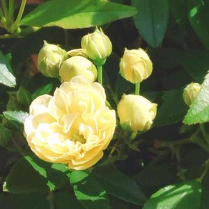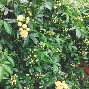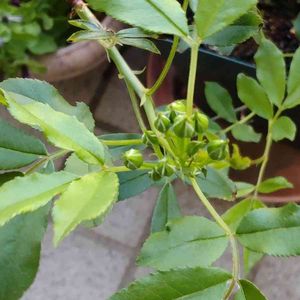 去年買った 黄モッコウバラ 八重の蕾がたくさんついています☺️ 咲くのが楽しみです❤️