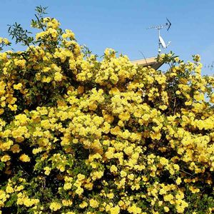 まだ満開ではないけど我が家のモッコウバラが咲き出してます♡ モンスター化してます👾👾