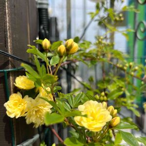 モッコウバラが咲き始めました💛💚 蕾もぷくぷくで可愛い❣️ この子はトゲがないから好きです