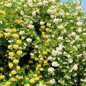 モッコウバラ 垣根がモリモリの薔薇で埋め尽くされて綺麗です ジム帰り憩いの家にて✨