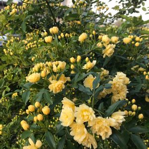 鉢植えのモッコウバラ 満開です😉 昨年買った小さな苗が、1年で大きく成長しました😄