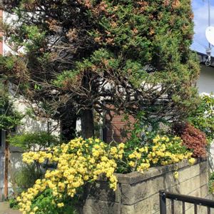ご近所さん🍀 もう1枚追加で🙇♂️ 横から見た全体の📸 ツキヌキニンドウ❣️とモッコウバラ🌼
